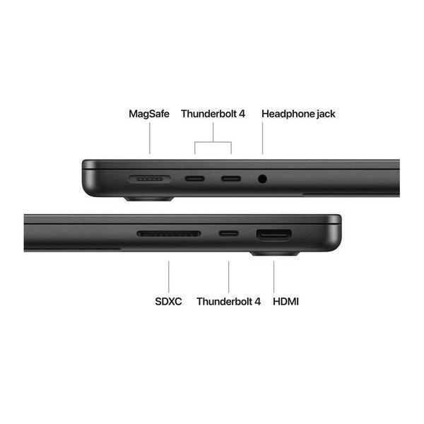 PortsSDXC card slot, HDMI port, 3.5mm headphone jack, MagSafe 3 port, Thunderbolt, Thunderbolt 5, Thunderbolt 4
