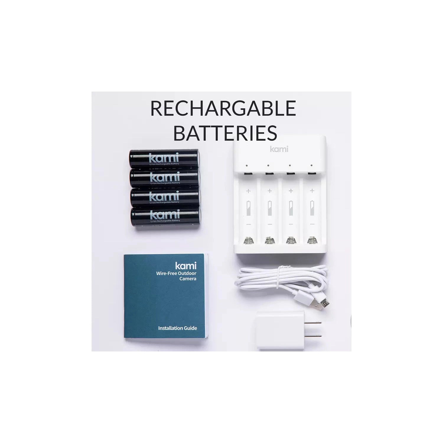 Kami Wire-Free Outdoor Camera is a 100% wire-free HD camera with advanced motion detection. Featuring a truly wireless design, this cutting edge Wire-Free Outdoor Kami Camera doesn't require any external base stations or hubs. Just use the included rechargeable batteries and your camera is ready to use. Designed to be the ultimate wireless security camera, with the versatility to be used in multiple scenarios - place it anywhere in your home or bring it with you everywhere you go.