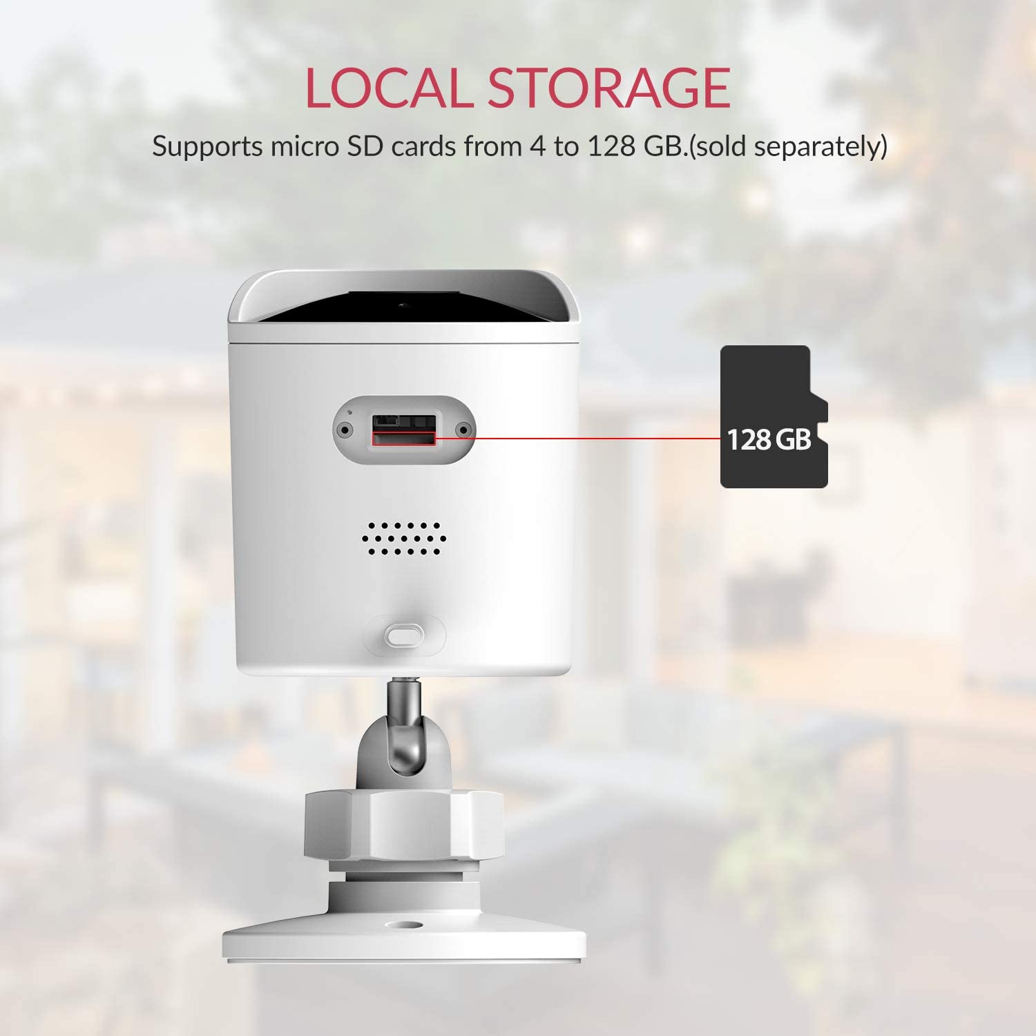 - SECURE STORAGE ON YI CLOUD - Loop recording of all the videos of the detected activity via YI CLOUD (with end-to-end encryption to fully protect the user’s privacy). Subscription plans for longer storage and recording options are also available - LOCAL STORAGE ON MICRO SD CARD: Supported Micro SD cards up to 128 GB, class 4 and above.
