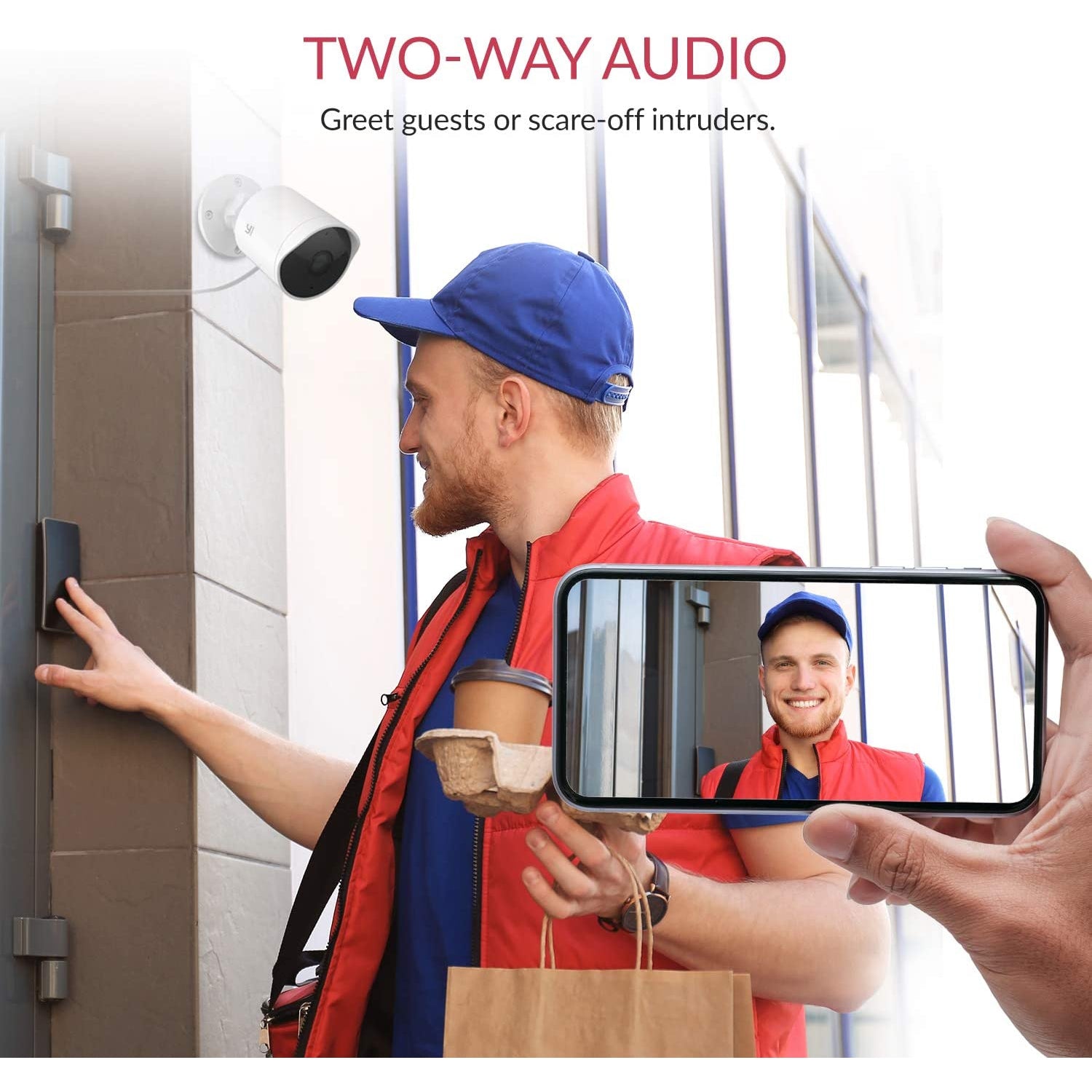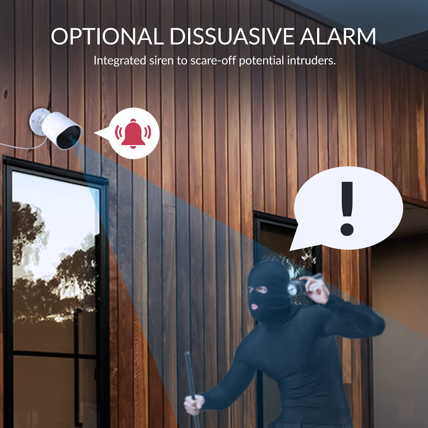 - OPTIONAL DETERRENT ALARM: Integrated siren which, if enabled, will emit an acoustic alarm each time the camera detects any activity. WORKS WITH ALEXA ECHO SHOW: See the camera’s live-feed directly from your Echo Show screen with a simple voice command - TWO-WAY AUDIO: Talk and listen thanks to the built-in microphone and speaker. Supports both Intercom (only one party can talk at a time) and Hands-free (both parties can talk simultaneously) modes