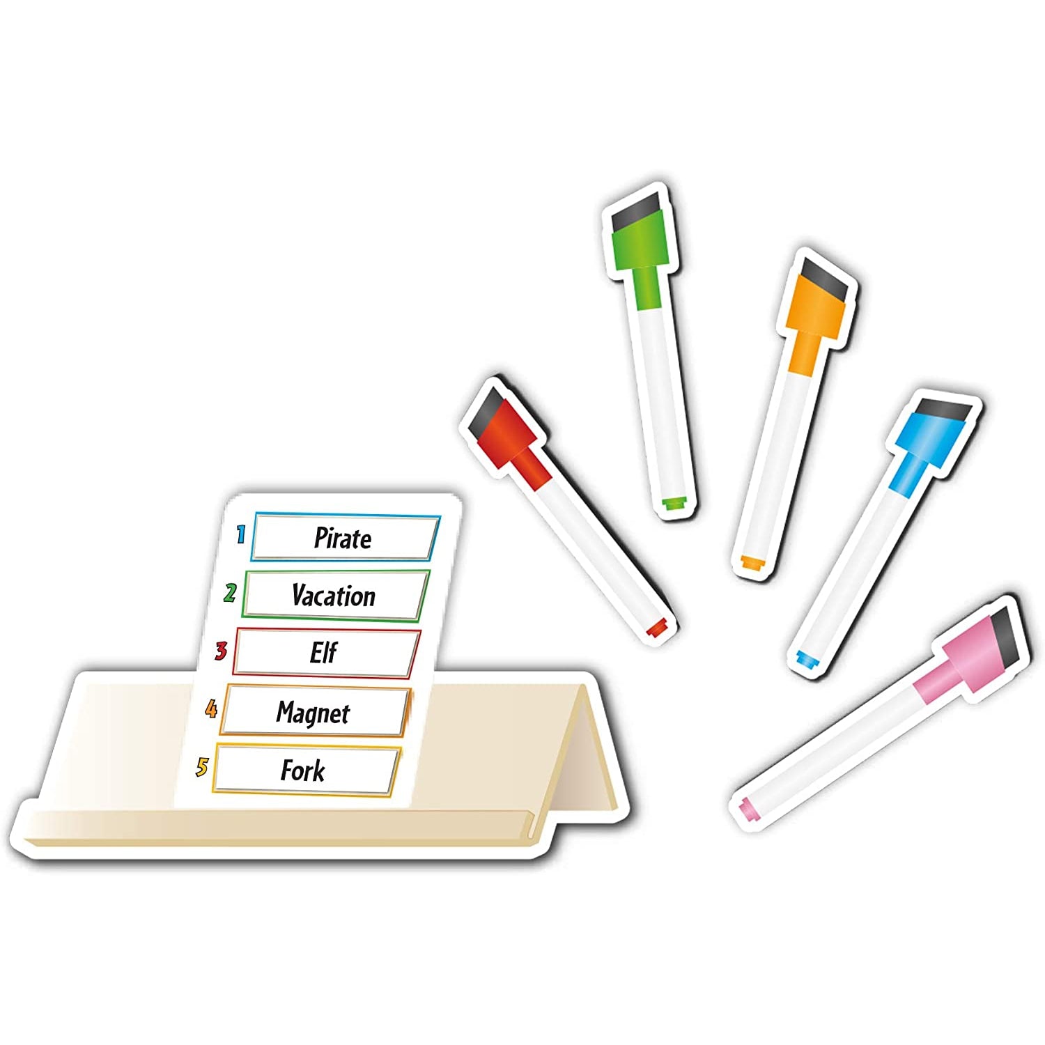 - Included components - 110 x Cards 7 x Easels 7 x Erasable Felt Markers 1 x Rulebook