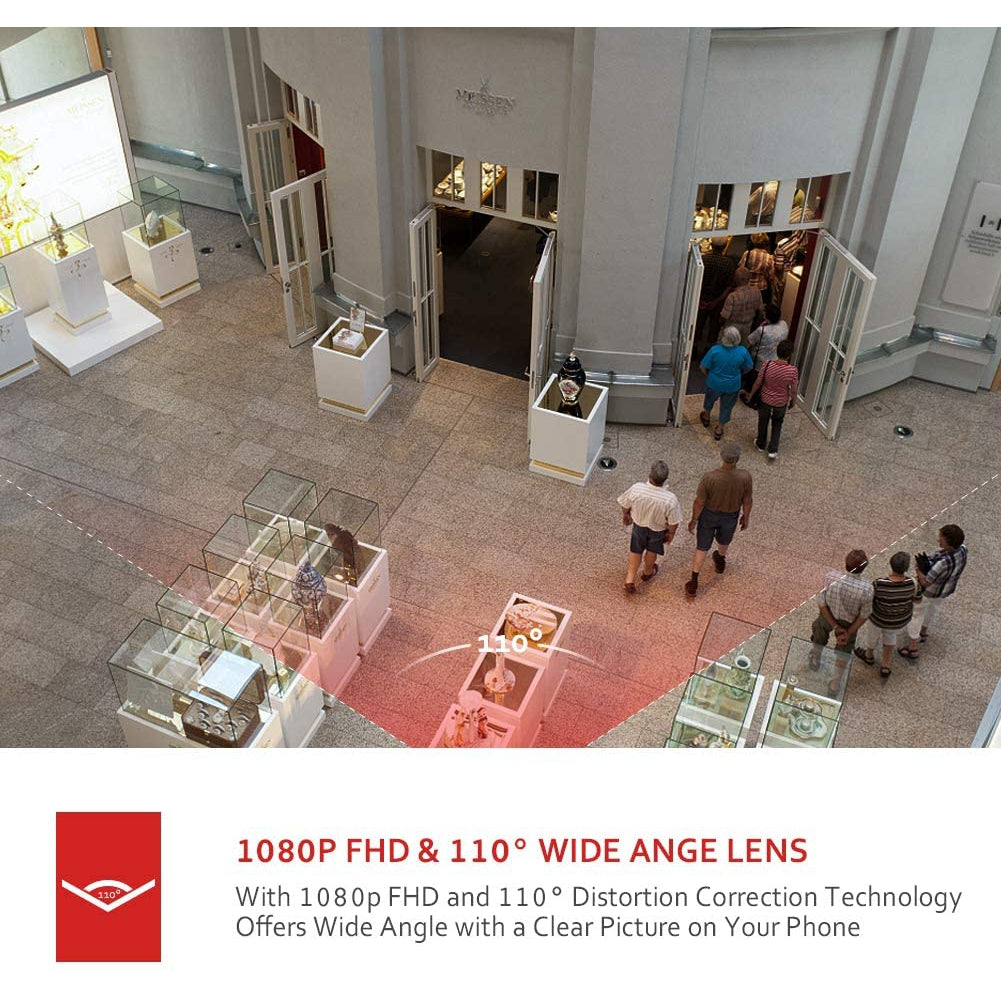 PC730 security camera delivers 1920*1080P high definition images no matter in rain, wind or shine, so you can capture clearer details around your home. A professional 110° wide-angle lens with distortion correction ensures that you can see enough activity, and the ball mount gives you more freedom of where you want to view.